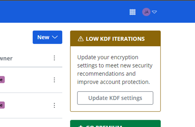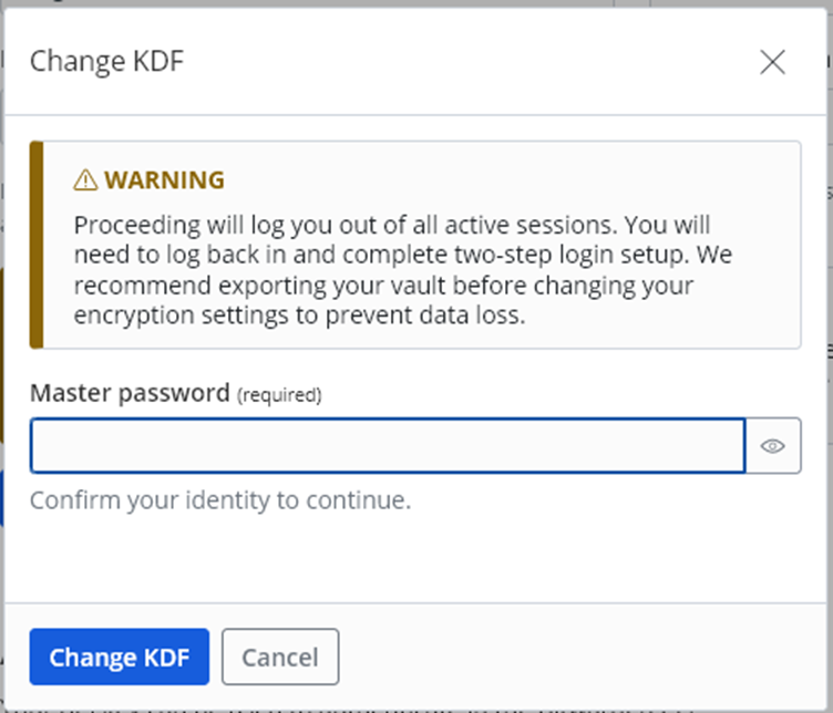 Having taken the above precautions, you’re now ready to make the KDF update that will address the “Low KDF Iterations” warning.