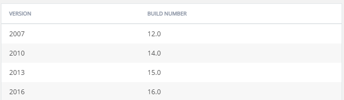 Replace <Build Number> in the text above with the appropriate code for the version of Outlook in use as per the table below.