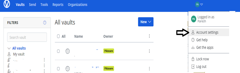 1. Log in to your PAteam Vault.