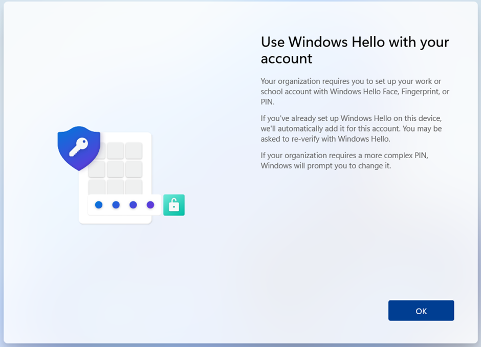 Now, just follow the on-screen instruction to sign on your PATEAM network account again. If you have not yet set up the Azure MFA, you'll be asked to setup at this step before the Windows Hello PIN. This is required as it is used to reset the Windows Hello PIN or biometric if needed. We recommend to setup Microsoft Authenticator App as your preferred Azure MFA method, and you can enable Password less authentication for browser-based applications later.