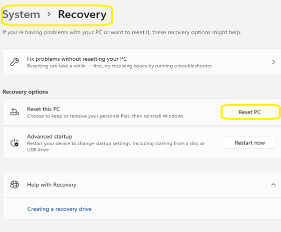 This procedure is for reset Windows 10/11 devices and opt for the device management.