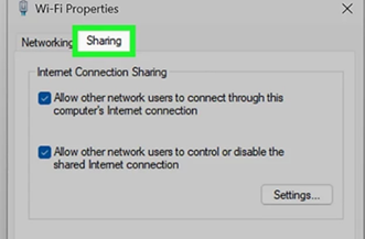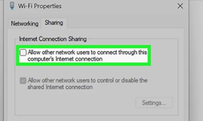“Allow other network users to connect through this computer's internet