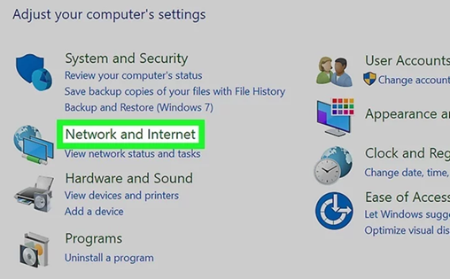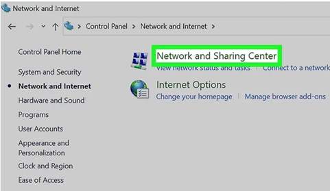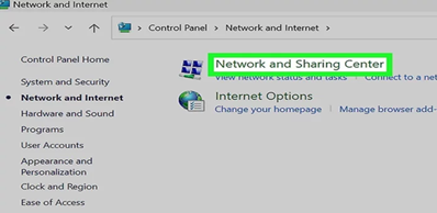 printer sharing.” On Windows 10, go to Control Panel > Network and Internet