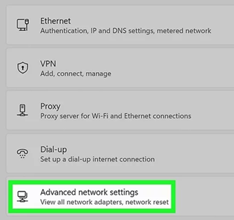 Settings > Network & internet > Advanced network settings >