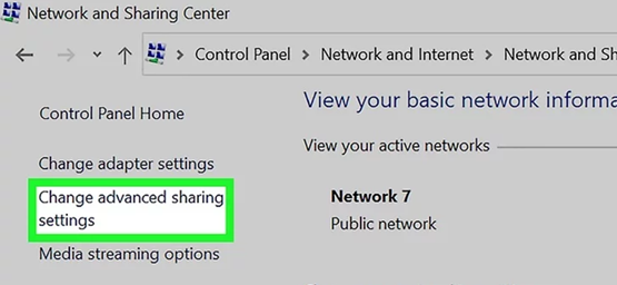 4.Click Change advanced sharing settings. It's the third link from the top of the